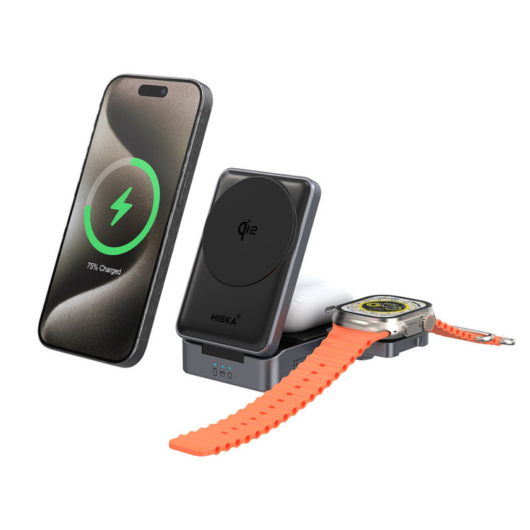 شارژر بیسیم سریع هیسکا مدل HR-15 یکی از جدیدترین محصولات این برند در حوزه لوازم جانبی دیجیتال است که با طراحی هوشمندانه و چندکاره خود، پاسخگوی نیاز کاربران مدرن و حرفهای خواهد بود. این شارژر با بهرهگیری از فناوری شارژ سریع Qi2، قادر است بهصورت همزمان سه دستگاه مختلف از جمله گوشی هوشمند، ساعت هوشمند اپل و هدفون بیسیم (مانند AirPods) را بهصورت کاملاً بیسیم و با قدرت مناسب شارژ کند. یکی از ویژگیهای برجسته HR-15، طراحی تاشوی بخش مخصوص شارژ اپل واچ است که علاوهبر ظاهر زیبا، به حمل آسانتر و استفاده بهینه در فضای کم کمک میکند. این ویژگی، محصول را به گزینهای بسیار کاربردی برای استفاده در محیطهای کاری، منزل یا حتی هنگام سفر تبدیل کرده است. بدنه این شارژر از ترکیب پلاستیک فشرده ABS، پلیکربنات (PC) و پوشش سیلیکونی ساخته شده که در کنار وزن مناسب، هم حس مقاومت و دوام را منتقل میکند و هم طراحی ظریف و مدرنی دارد. این شارژر از طریق ورودی 5V/3A یا 9V/3A انرژی دریافت میکند و خروجی آن متناسب با نوع دستگاه متفاوت است؛ برای آیفون تا ۱۵ وات توان خروجی ارائه میدهد، در حالی که برای گوشیهای سامسونگ توان ۱۰ وات در نظر گرفته شده است. همچنین پد مخصوص شارژ هدفونهای بیسیم تا توان ۵ وات و محل شارژ اپل واچ با توان ۲.۵ وات دستگاههای شما را با سرعت مناسب و بدون آسیب دیدن باتری شارژ میکنند. سازگاری کامل با گوشیهای آیفون سری ۱۲ به بعد و دیگر دستگاههای دارای استاندارد Qi2 باعث شده تا HR-15 انتخابی بیدردسر و آیندهنگرانه برای کاربران اپل و دیگر برندهای روز بازار باشد. تراز مغناطیسی دقیق در قسمت پد شارژ باعث میشود که گوشی بهراحتی در محل درست قرار بگیرد و عملیات شارژ بهطور ایمن و بدون قطعی انجام شود. در مجموع، اگر بهدنبال یک شارژر بیسیم چندمنظوره، قابلحمل، باکیفیت و زیبا هستید که بتواند همزمان چند دستگاه شما را بهسرعت و بدون نیاز به کابل شارژ کند، مدل HR-15 از برند HISKA گزینهای حرفهای، مطمئن و ارزشمند برای شما خواهد بود.