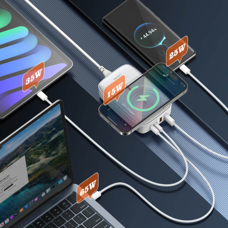 ۶ خروجی همزمان → ترکیبی از پورتهای USB-C و USB-A برای تمام گجتها.