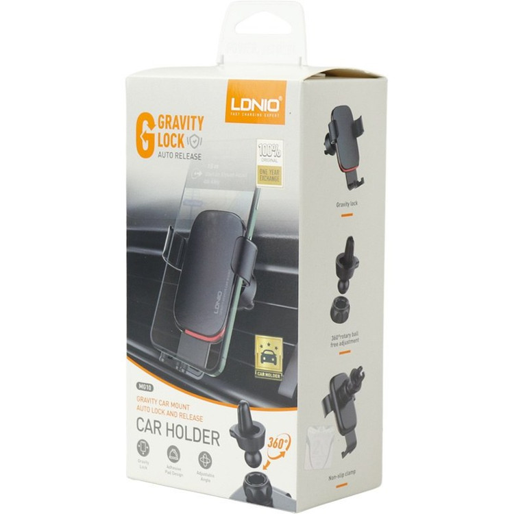 جنس آن از پلاستیک ABS و آلیاژ آلومینیوم ساخته شده که مقاوم در برابر ضربه و فشار بوده و با اغلب گوشی های دارای عرض 4 تا 6٫7 اینچ سازگار می باشد. Ldnio MG10 امکان چرخش 360 درجه جهت تنظیم زاویه مناسب برای صفحه نمایش موبایل دارد تا کاربر بتواند در زاویه دید مورد نظر خود به راحتی با آن کار کند.