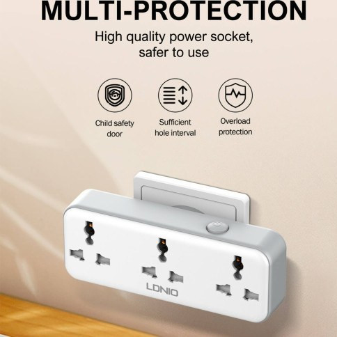 همچنین این رابط برق مدل 3317 الدینیو 3 پورت برق AC دارد که برای افزایش پریز های برق هم استفاده میگردد. توان کلی این رابط برق 2500 وات می باشد. به این رابط برق را باید به وسایل برقی مانند تلویزیون ، گیرنده، موبایل ، تبلت و... متصل کنید. یکی از ویژگی های این رابط برق USB دار الدینیو مدل Ldnio SC3317 ضد حریق و در دمای بالا مقاوم است.