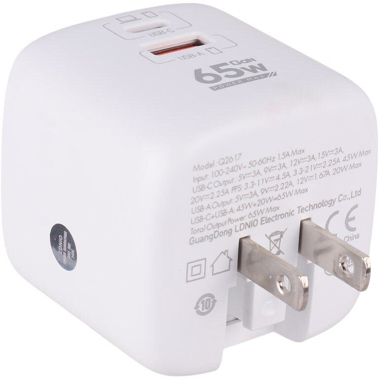 شارژر مدل LDNIO Q2617 با توان 65 وات یکی از شارژرهای سریع و باکیفیت است که برای کسانی طراحی شده که چند دستگاه دارند یا نیاز به شارژ سریع دارند. این شارژر شامل دو خروجی است: یک پورت USB-C و یک پورت USB-A. پشتیبانی از پروتکلهای شارژ سریع مثل PD و QC3