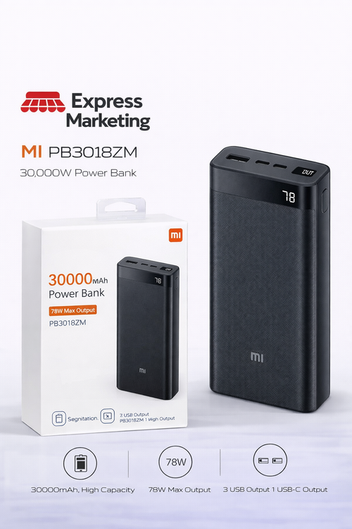 پاوربانک شیائومی ظرفیت 30000 میلی آمپر مدل Mi Power Bank 30000mAh PB3018ZM پاوربانک خود با ظرفیت 30000 میلی آمپر را عرضه کرده است. این بزرگترین پاوربانک شیائومی است. جنس این پاوربانک از پلاستیک PC+ABS که با محیط زیست سازگار است میباشد. جلای مات دارد. قابلیت شارژ سریع دو طرفه مهمترین ویژگی شیائومی می پاوربانک 3 PB3018ZM است پس علاوه بر آن که سریع شارژ میشود سریع هم دستگاه متصل شده را شارژ میکند. ظرفیت این پاوربانک به اندازهای است که میتواند یک گوشی مانند Mi 10 شیائومی (4،780 میلیآمپر ساعت) را 4.5 بار یا باتری کوچکتر از آن مانند آیفون SE جدید را (1،821 میلیآمپر ساعت) بیش از 10 بار شارژ کند.
