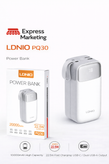 کمپانی LDNIO در دنیای لوازم جانبی کاملا شناخته شده است و شهرت این برند ، در کیفیت ساخت بسیار بالا و همچنین مجهز بودن به تکنولوژی و امکانات روز است. تمامی محوصلات این برند در فروشگاه های معتبر سراسر دنیا اهم از آمریکا و اروپا و … به فروش می رسد و محصولات متعددی ازین برند در سایت آمازون نیز به چشم می خورد. پاوربانک 30000 میلی آمپر الدینیو PQ30 یک هیولای قدرتمند و به شدت حرفه ایست! از ظاهر محصول به راحتی می توان به قدرت و کارآیی بی عیب و نقص این محصول ، پی برد. در بالای پاوربانک LDNIO Pq30 ، چهار درگاه جای گرفته است؛ 2 درگاه USB و 2 درگاه تایپ سی PD. همچنین ، به بدنه 2 نوع کابل Lightning و Type-C متصل است تا کاربر را از به همراه داشتن کابل های متعدد بی نیاز سازد. بر روی پنل جلویی ، 1 نمایشگر LCD نمایش عددی/درصدی میزان شارژ قرار دارد. خروجی پاوربانک در حدود 22.5 وات است که برا شارژ نمودن انواع موبایل ، تبلت ، ساعت هوشمند و … ایده آل است. تمامی درگاه ها از تکنولوژی Fast Charge QC3.0 پشتیبانی می کنند و مجهز به فناوری AudoID هستند. قابلیت AutoID می تواند بصورت هوشمند خروجی خود را کم و یا زیاد تا متناسب به دستگاهی که به پاوربانک متصل می گردد ، شارژدهی کند. این فرآیند منجر به بهینه شدت مدت زمان شارژ ، بهبود کیفیت شارژدهی و همچنین افزایش طول عمر باتری می گردد. این محصول ، به تمامی استانداردهای به روز کمپانی LDNIO مجهز گردیده است.