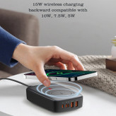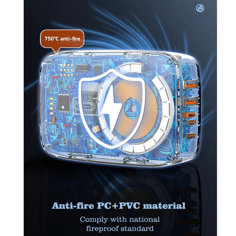شارژر140وات رومیزی LDNIO 6IN1-Q4010 با توان خروجی کلی 140 وات و داشتن 5 پورت خروجی و 1 پورت خروجی وایرلس شارژ متشکل از 2 عدد USB و 2 عدد Type C و 1 عدد لایتنینگ و همچنین محل قرار گیری وایرلس شارژ می تواند انتخاب خوبی برای میز کارتان باشد. این شارژر رومیزی با فناوری ساخت گالیم نیترات GaN طراحی شده است و از مواد PC نسوز تا 850 درجه سانتیگراد ساخته شده است و به عنوان هاب شارژر مورد استفاده قرار می گیرد. هاب شارژر الدینیو 6IN1-Q4010 با پروتکل شارژ گوشی های آیفون، سامسونگ، هوآوی، شیائومی و ویوو سازگاری دارد و از پروتکل های فست شارژ QC4.0, PD3.0, SCP, VOOC, AFC, FCP و Auto ID پشتیبانی می کند. درگاه تایپ سی این محصول با توان 65 وات، مناسب شارژ لپ تاپ نیز است. شارژر LDNIO A4809C در برابر توان، ولتاژ، شارژ شدن و دمای اضافی مقاوم است. همچنین در برابر اتصال کوتاه و میدان مغناطیسی و ولتاژ پایین نیز ایمن است. این شارژر دارای 5 پورت خروجیست که شامل 2 عدد USB و 2 عدد تایپ سی و 1 پورت لایتینگ و 1 پورت وایرلس با توان خروجی 3 تا 15 وات که میتوان ساعت هندزفری و موبایل وایرلس خود را شارژ کرد که یعنی شما می توانید همزمان 5 دستگاه خود را با آن شارژ کنید.