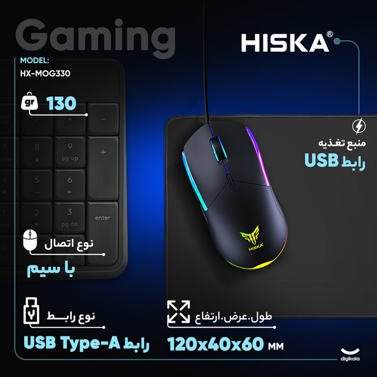 ماوس هیسکا HX-MOG330 برای گیمرهایی ساخته شده که دنبال ترکیبی از راحتی و دقت هستند، بدون آنکه نیاز به امکانات پیچیده داشته باشند. وزن ۱۳۰ گرم و ابعاد جمعوجور باعث میشود دست بهخوبی روی ماوس قرار بگیرد و حتی بعد از ساعتها بازی احساس خستگی نکند. شش کلید تعبیهشده روی بدنه، دسترسی سریع به عملکردهای اصلی را فراهم میکنند و حس کنترل کامل را به کاربر منتقل میکنند. حسگر اپتیکال با دقت ۳۲۰۰ DPI، حرکات دست را به شکلی نرم و دقیق دنبال میکند و روی سطوح مختلف مثل شیشه، پارچه، چوب و پلاستیک عملکرد خوبی دارد. کابل ۱۵۰ سانتیمتری با روکش بافت کنفی هم باعث دوام بیشتر میشود و هم مانور راحت ماوس را روی میز ممکن میکند، بدون اینکه دست درگیر مقاومت کابل شود. یکی از ویژگیهای جذاب این ماوس، نورپردازی RGB است که میز بازی را زنده و پویا میکند و جلوهای جذاب به محیط گیمینگ میبخشد. طراحی بدنه ساده و ارگونومیک HX-MOG330 باعث میشود دست در طول بازی راحت باشد و فشار یا خستگی احساس نشود. این ماوس با رابط USB Type-A کار میکند و با تمام سیستمعاملهای ویندوز، مک و لینوکس سازگار است، پس میتوانید بدون نگرانی آن را به هر سیستمی وصل کنید. در کل HX-MOG330 تجربهای پایدار و قابل اعتماد برای گیمرها ارائه میدهد و با ترکیب دقت، راحتی و نورپردازی جذاب، میز بازی را زنده و لذتبخش میکند.