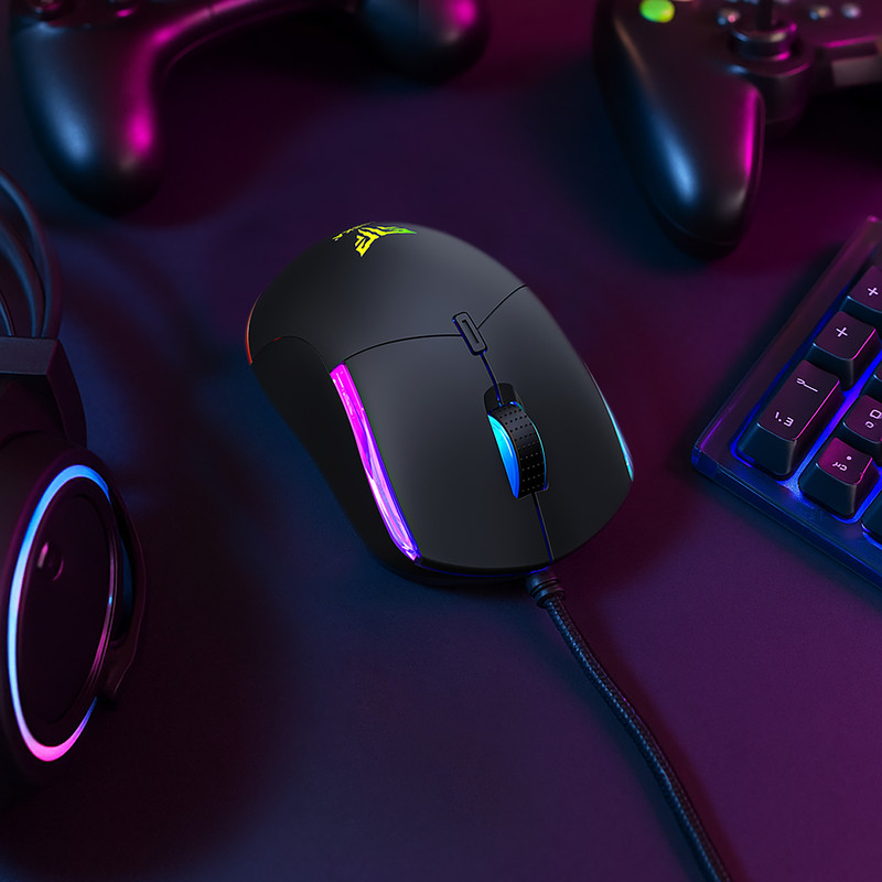 ماوس هیسکا HX-MOG330 برای گیمرهایی ساخته شده که دنبال ترکیبی از راحتی و دقت هستند، بدون آنکه نیاز به امکانات پیچیده داشته باشند. وزن ۱۳۰ گرم و ابعاد جمعوجور باعث میشود دست بهخوبی روی ماوس قرار بگیرد و حتی بعد از ساعتها بازی احساس خستگی نکند. شش کلید تعبیهشده روی بدنه، دسترسی سریع به عملکردهای اصلی را فراهم میکنند و حس کنترل کامل را به کاربر منتقل میکنند. حسگر اپتیکال با دقت ۳۲۰۰ DPI، حرکات دست را به شکلی نرم و دقیق دنبال میکند و روی سطوح مختلف مثل شیشه، پارچه، چوب و پلاستیک عملکرد خوبی دارد. کابل ۱۵۰ سانتیمتری با روکش بافت کنفی هم باعث دوام بیشتر میشود و هم مانور راحت ماوس را روی میز ممکن میکند، بدون اینکه دست درگیر مقاومت کابل شود. یکی از ویژگیهای جذاب این ماوس، نورپردازی RGB است که میز بازی را زنده و پویا میکند و جلوهای جذاب به محیط گیمینگ میبخشد. طراحی بدنه ساده و ارگونومیک HX-MOG330 باعث میشود دست در طول بازی راحت باشد و فشار یا خستگی احساس نشود. این ماوس با رابط USB Type-A کار میکند و با تمام سیستمعاملهای ویندوز، مک و لینوکس سازگار است، پس میتوانید بدون نگرانی آن را به هر سیستمی وصل کنید. در کل HX-MOG330 تجربهای پایدار و قابل اعتماد برای گیمرها ارائه میدهد و با ترکیب دقت، راحتی و نورپردازی جذاب، میز بازی را زنده و لذتبخش میکند.